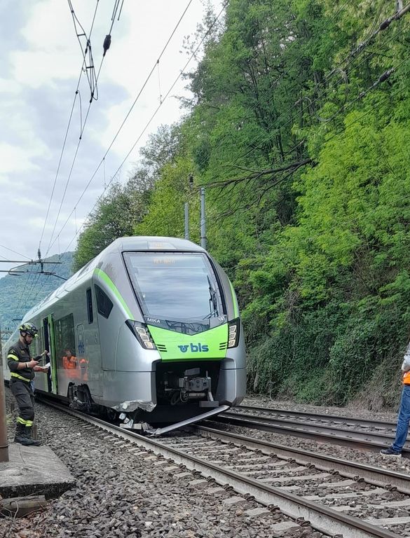 E' stato un treno delle BLS diretto a Berna e partito da Domo a colpire un grosso masso finito sui binari. Fortunatamente nessuno dei 150 passeggeri ha riportato ferite. Il treno è uscito dai binari con il locomotore.