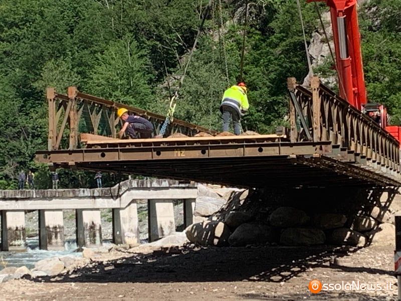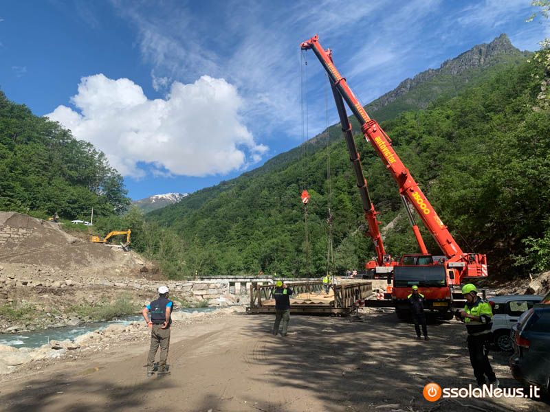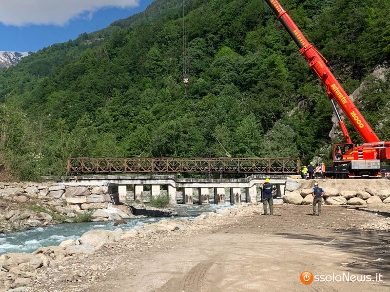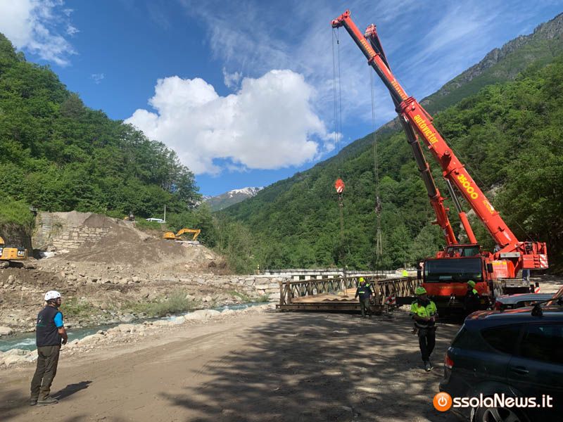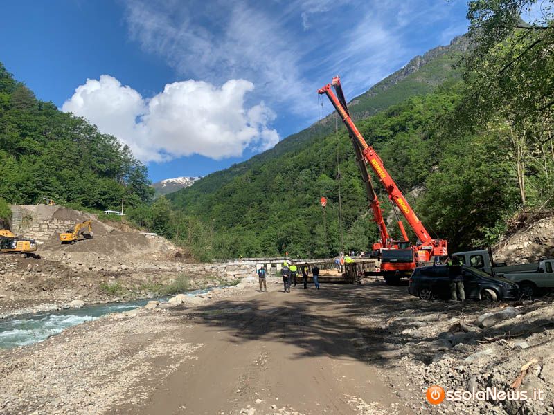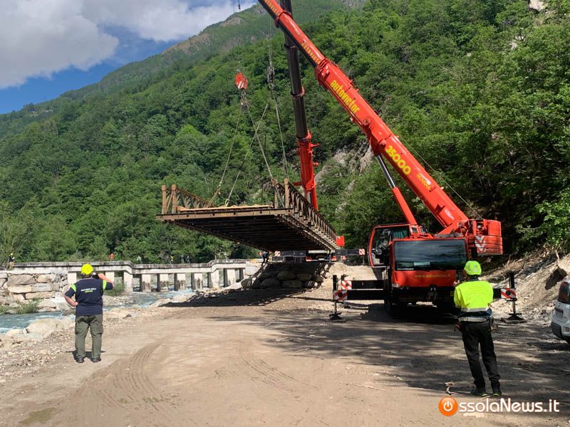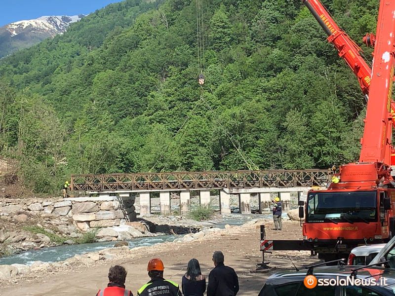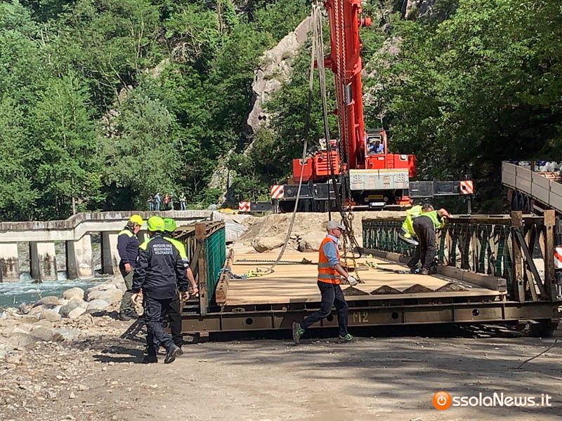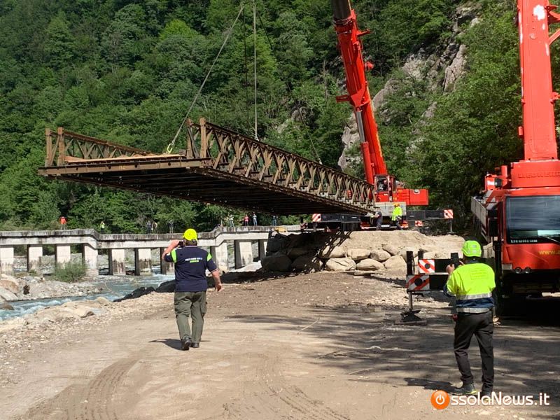 È stato posato il ponte bailey che nei giorni scorsi era stato portato a Bognanco per ripristinare almeno provvisoriamente la viabilità della Valle, rimasta isolata in seguito ad una frana.