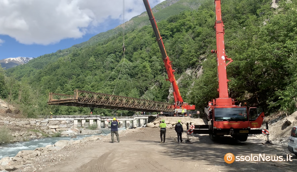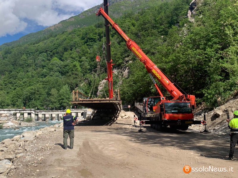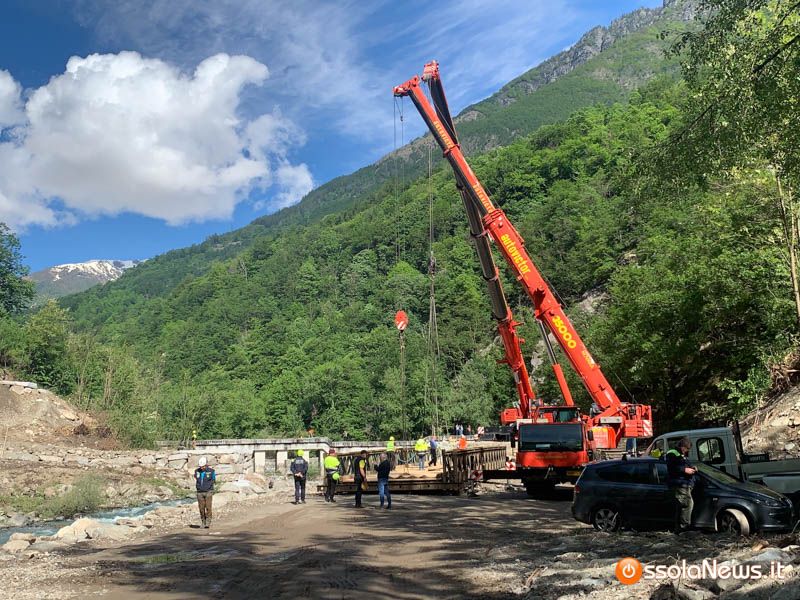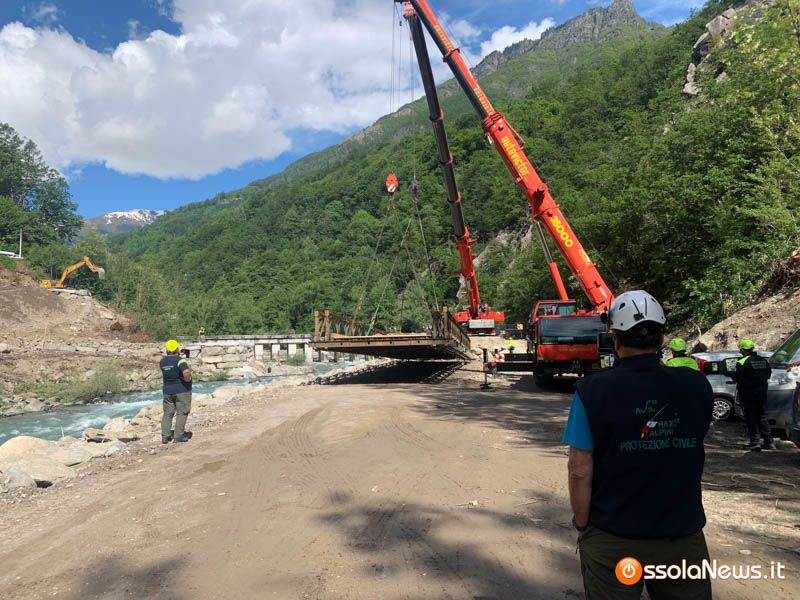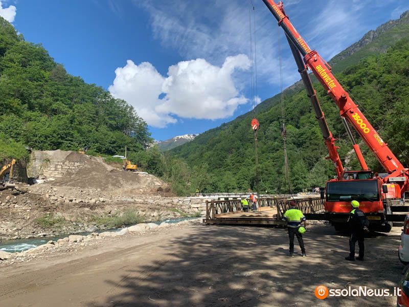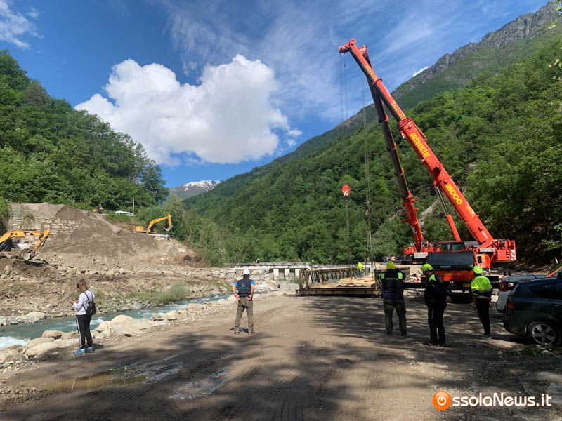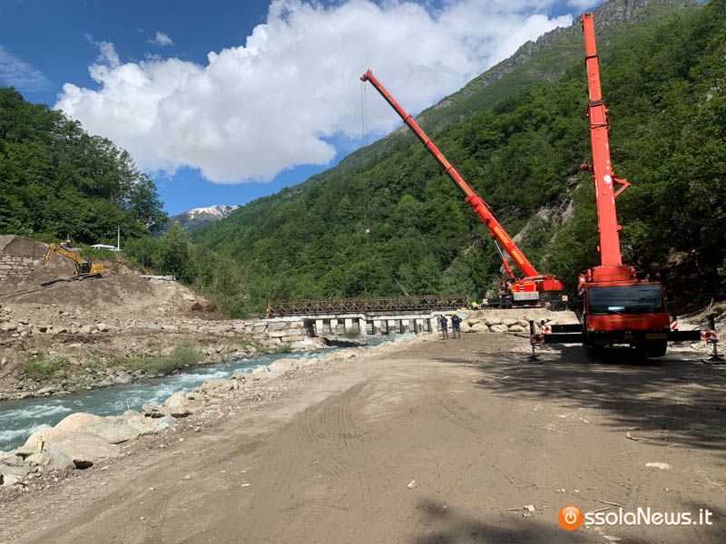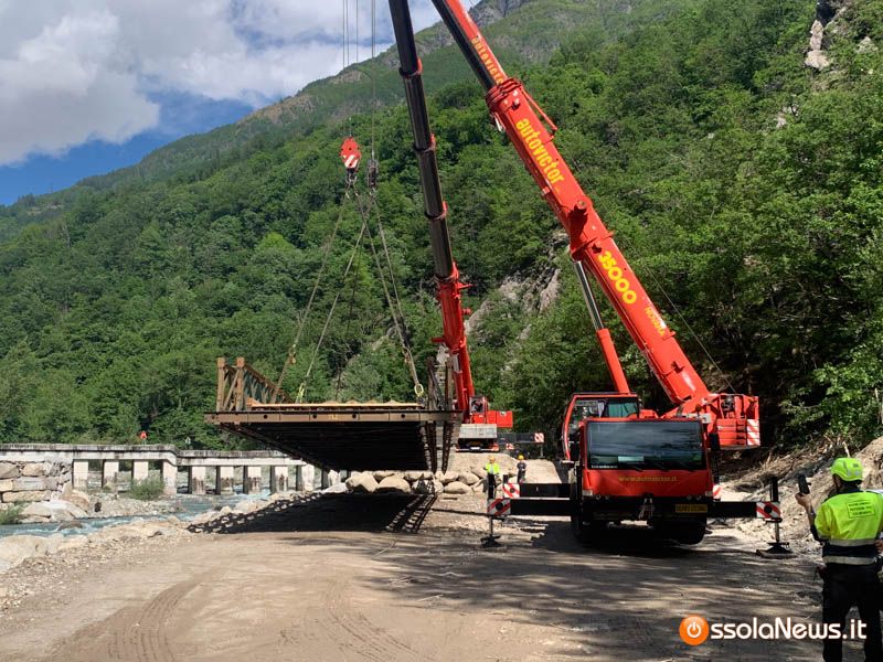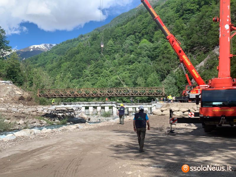 È stato posato il ponte bailey che nei giorni scorsi era stato portato a Bognanco per ripristinare almeno provvisoriamente la viabilità della Valle, rimasta isolata in seguito ad una frana.