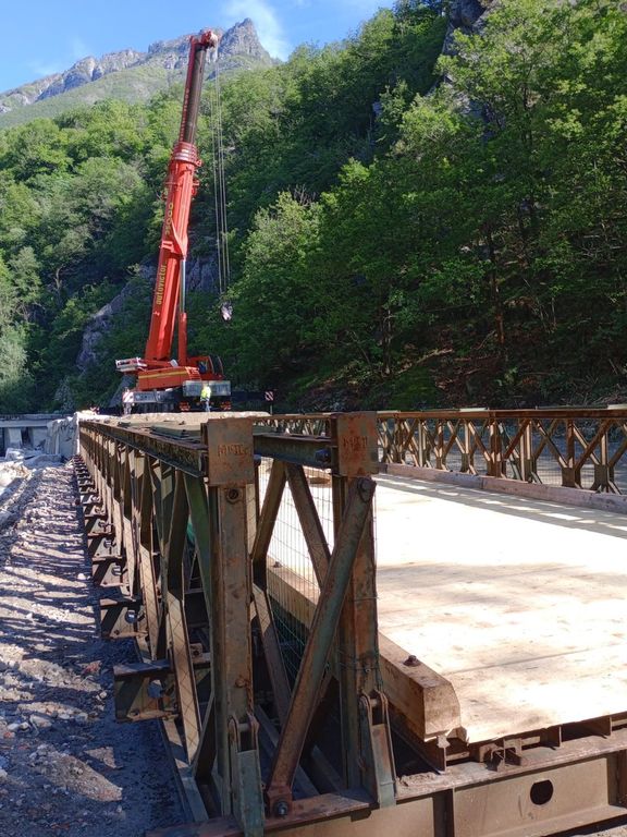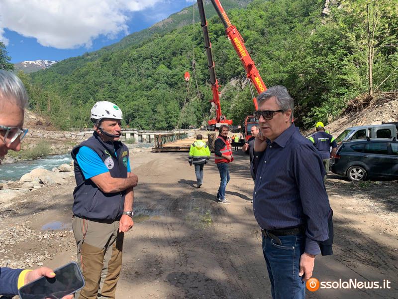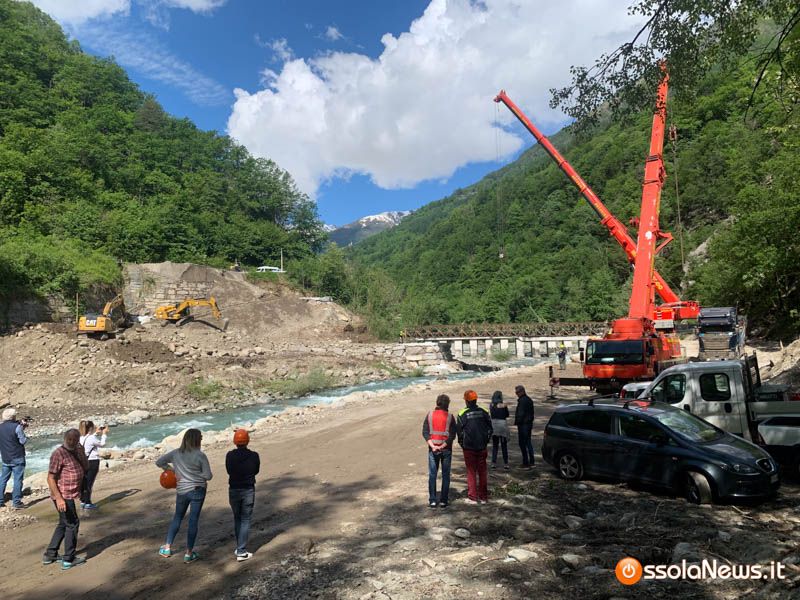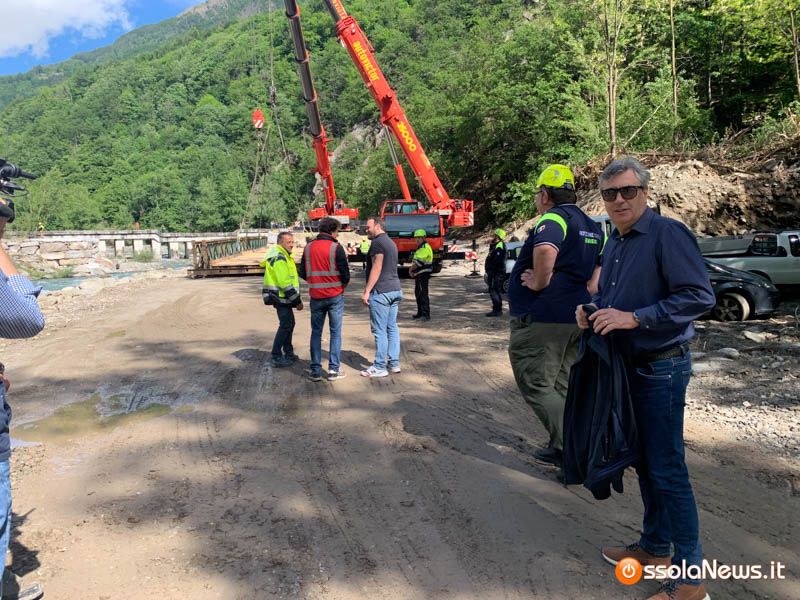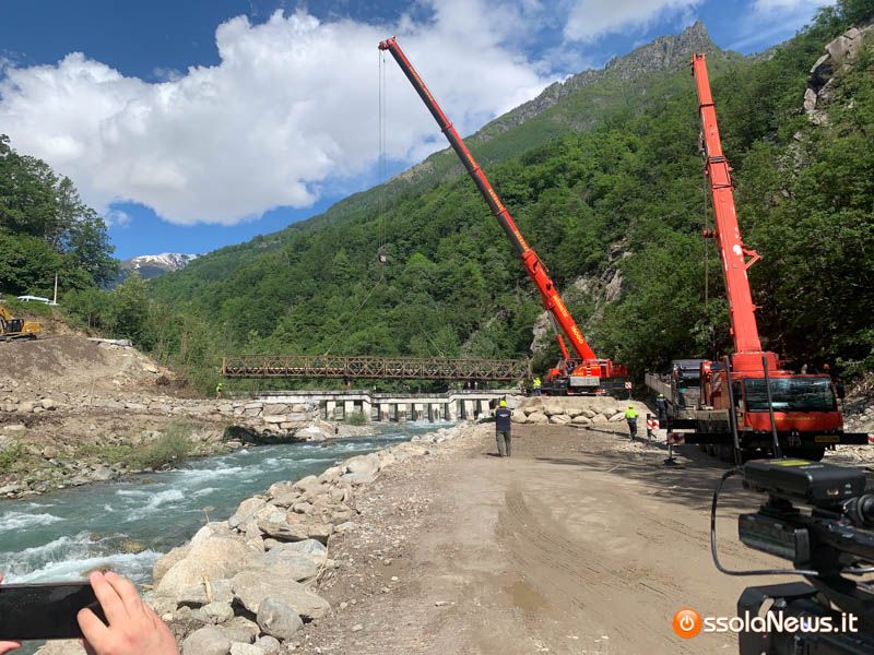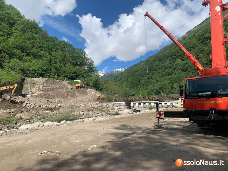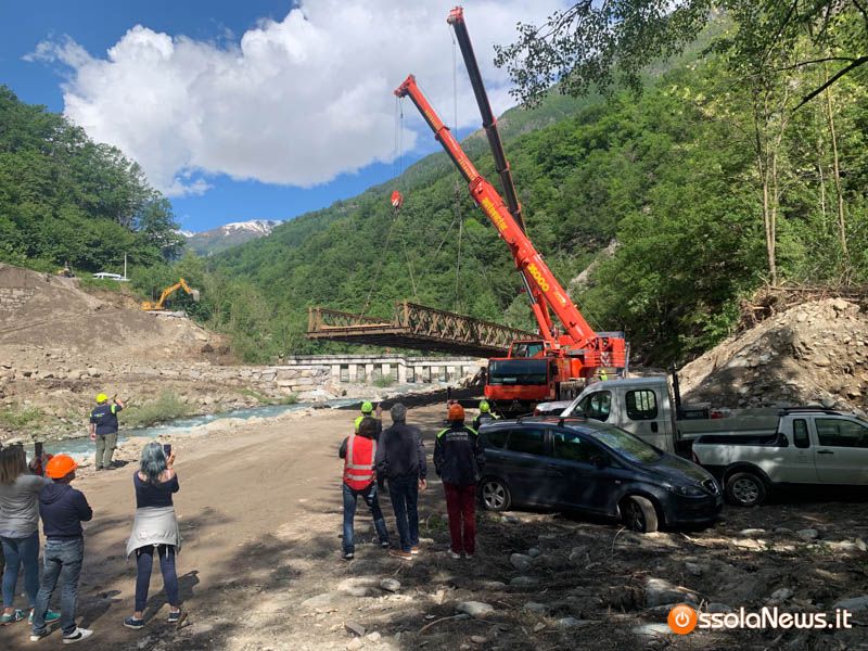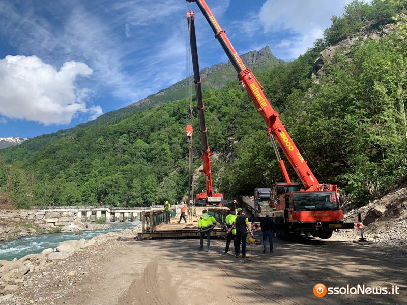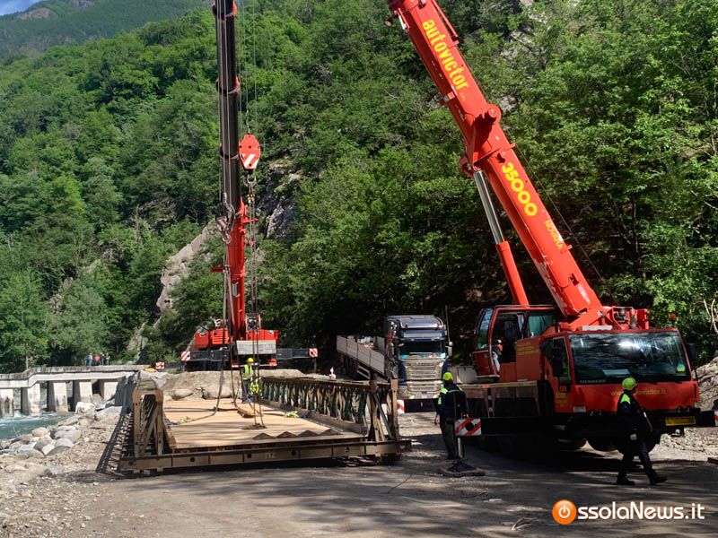 È stato posato il ponte bailey che nei giorni scorsi era stato portato a Bognanco per ripristinare almeno provvisoriamente la viabilità della Valle, rimasta isolata in seguito ad una frana.