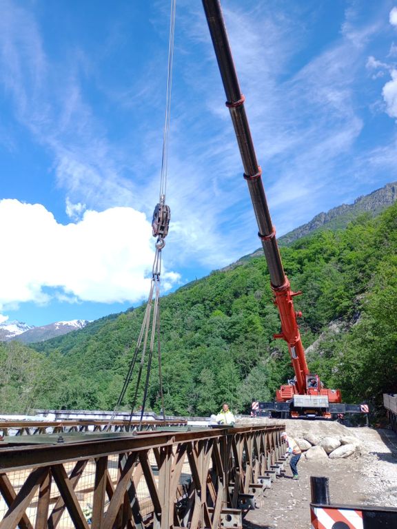 L’Associazione Genieri della Protezione Civile si è dunque occupata del montaggio del ponte, dopo che, nei giorni scorsi, la ditta Frua ha lavorato incessantemente per preparare le spalle di appoggio. In questo modo, una volta posato e raccordato con la strada, il ponte sarà immediatamente pronto per essere utilizzato, ponendo così fine all’isolamento dei cittadini della Valle.