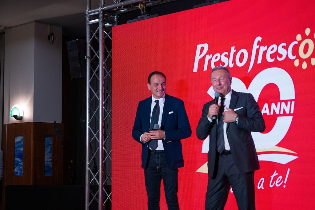 Nel giardino dell’ Hotel Il Giardino dei Tigli a Cussanio (Fossano), durante un apericena organizzato dai fornitori di gruppo, fra musica e chiacchiericcio, si è dato il via all’Evento di anniversario. Poi gli invitati sono entrati nel grandissimo salone apparecchiato a festa, e sul palco si sono via via passati il microfono i protagonisti del successo di Prestofresco in 20 anni di attività. L’Amministratore Delegato, Sebastiano Sapino, ha raccontato il successo di una filosofia vincente che, a partire dal 2004 ha portato il marchio ad essere sempre più scelto per l’indiscussa qualità di prodotti e del servizio offerto. I numeri, oggi, ne confermano il successo: 10 milioni di clienti, 820 dipendenti, di cui il 73% donne e di cui il 75% sono rapporti di lavoro indeterminato. Ha parlato anche Pierantonio Sapino, che ha fondato i primi punti vendita insieme ai 3 fratelli, emozionato e felice ma sicuro, oggi come ieri, che la strada è quella giusta. Fra le tante presenze e interventi, anche quello di Alberto Cirio, amico e testimone di questi anni di crescita e affermazione di Prestofresco.