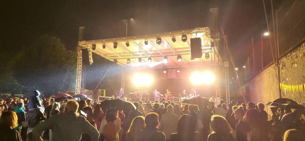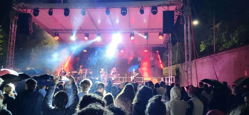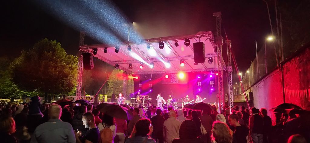 Sotto ai tendoni infatti in molti hanno gustato le specialità preparate dagli chef che si sono messi a disposizione, poi la serata è proseguita con il concerto dedicato ai frontalieri. Le Deviazioni Spappolate sono una garanzia, e se a centinaia di migliaia l'altra sera hanno cantato sotto la pioggia battente assieme al Vasco a Milano, i domesi non si sono certo fatti spaventare da qualche lieve goccia caduta nella serata di ieri. E anche se poi la pioggia è un po' aumentata, la band ha fatto cantare sulle note delle più belle canzoni del Blasco, regalando una bella serata.
