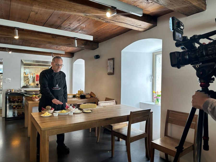 Rosti di patate, torte salate, fonduta di formaggio, raclette: sono queste e molte altre le specialità della cucina svizzera che lo chef Mauro Comazzi propone nel suo menu tradizionale, accompagnate da vini rigorosamente del territorio vallesano. A questi si aggiunge anche un po’ di Ossola con il gelato di produzione della stessa società di Pizzicoli - che fa parte della galassia del gruppo Altair di Villadossola - di che viene distribuito anche in diverse gelaterie presenti sul territorio del Vco e del Vallese. Per il ristorante Stockalperturm è stato creato un nuovo gusto di gelato dedicato a Gondo, a base di crema pasticcera con una variegatura al cioccolato bianco e foglie d’oro.