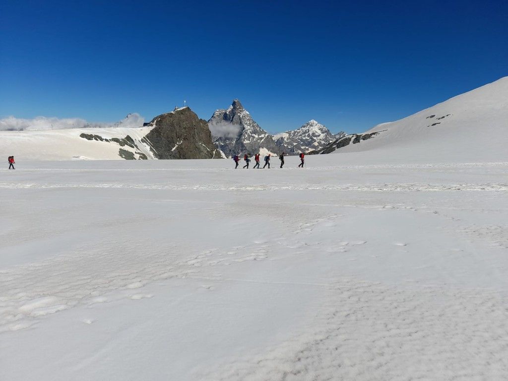 Daniele Boero, organizzatore: “La salita è andata piuttosto bene, abbiamo faticato meno del previsto e abbiamo raggiunto la vetta più velocemente di quanto previsto. La cima è stata caratterizzata da un vento forte e freddo, in particolare dalla metà della diagonale in cresta. Siamo arrivati alla cima tutti con le lacrime agli occhi ed eravamo emozionati. C’è stato un attimo di silenzio collettivo in contemplazione del panorama e dell’impresa compiuta. Raffaele, il trasportato, che solitamente non si esprime mai perché timido, era davvero molto contento. La giornata è andata molto bene, siamo molto orgogliosi di quello che è stato fatto e ringraziamo tutte le persone che ci hanno supportato e sono state vicine a questa impresa. Cervinia veramente riparte.”
