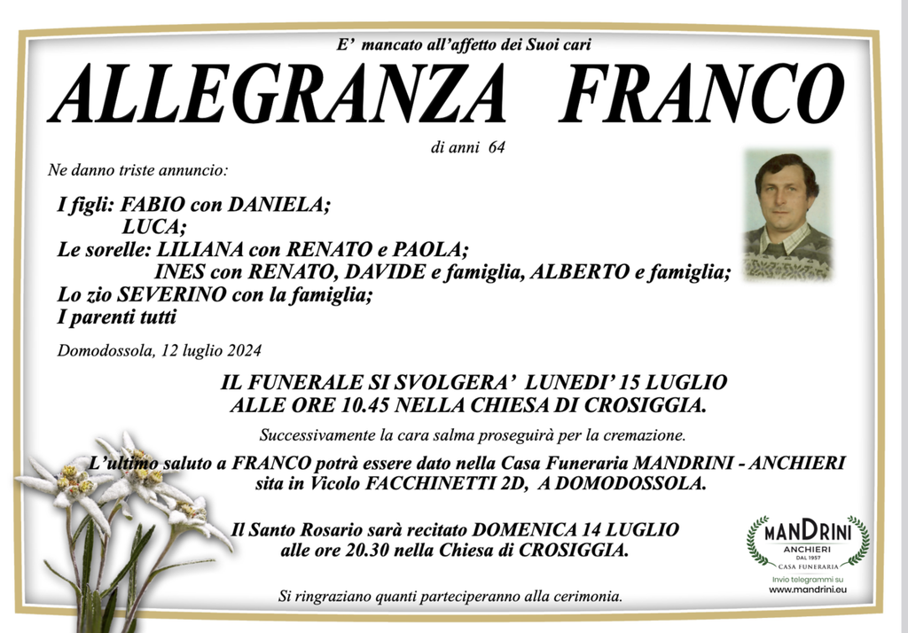 Allegranza Franco di anni 64