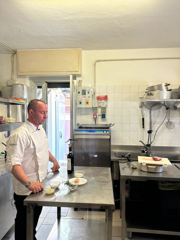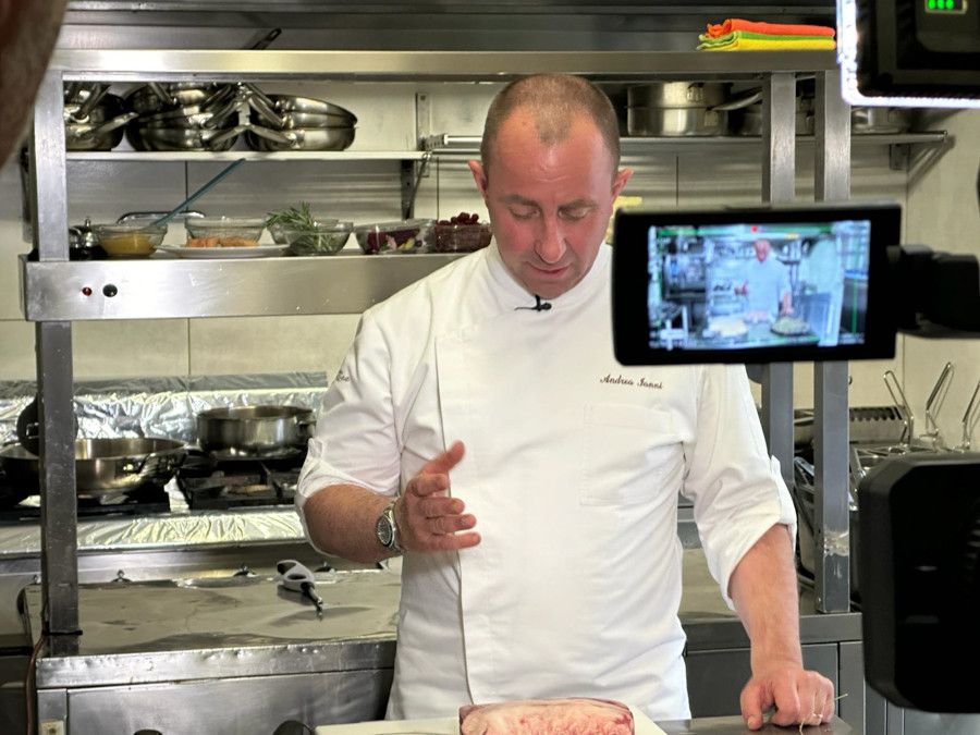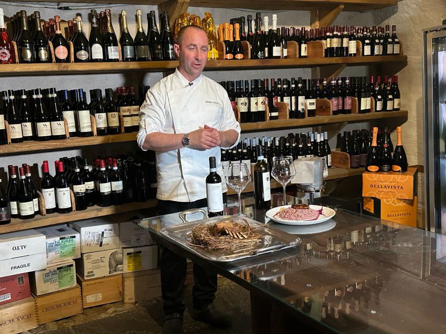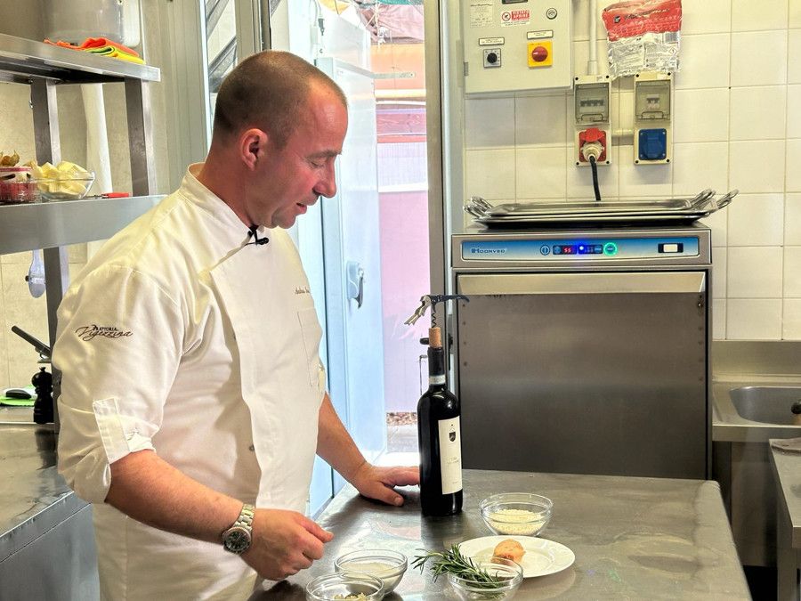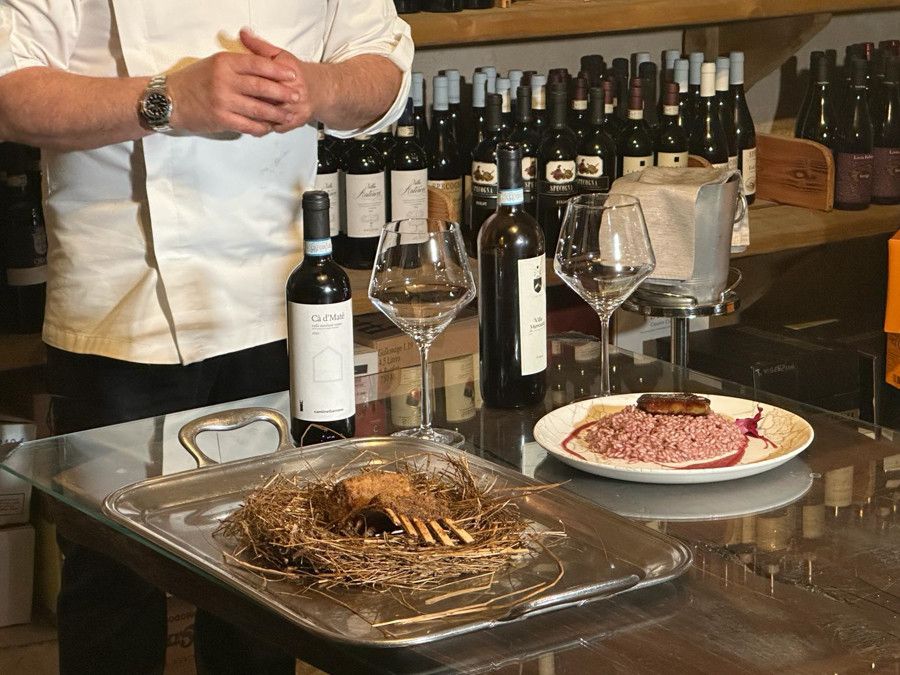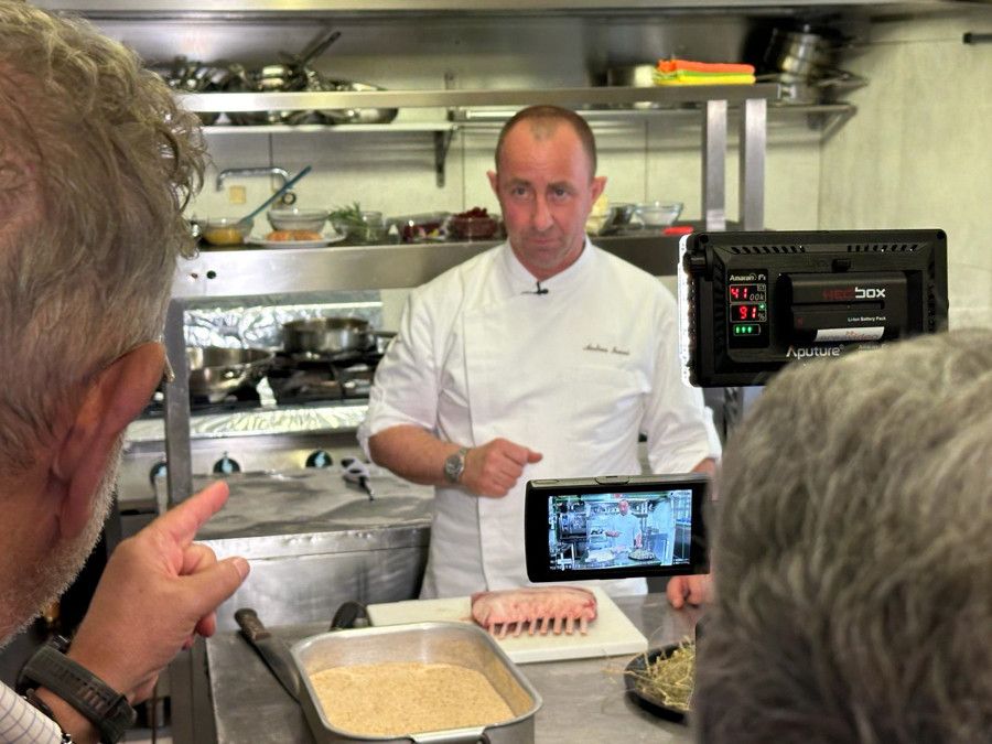 Nel servizio chef Ianni ha preparato un risotto al Prunent con scaloppa di foie gras e un invitante carrè d'agnello in crosta cotto nel fieno.