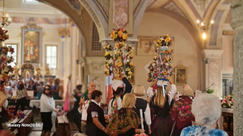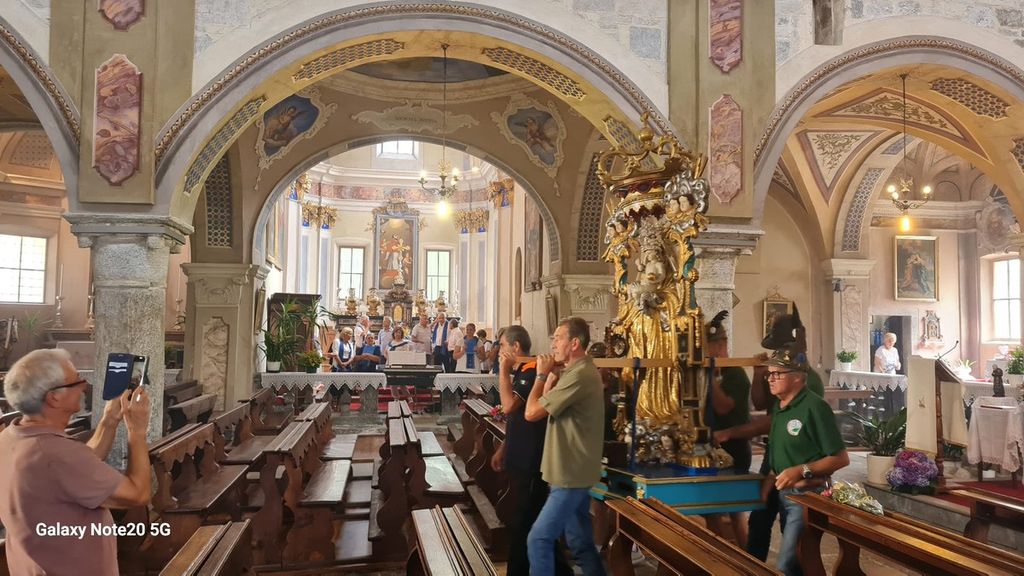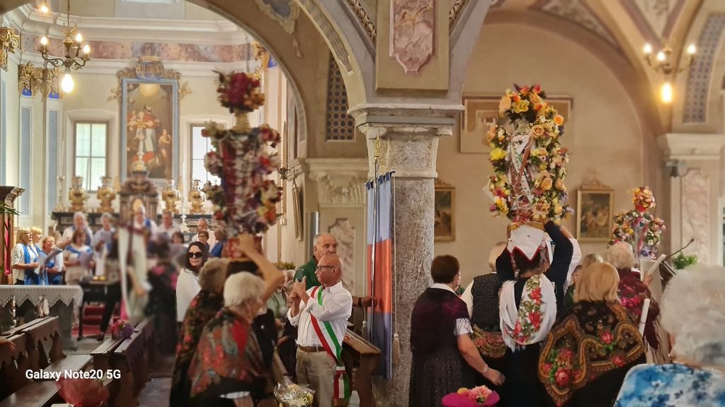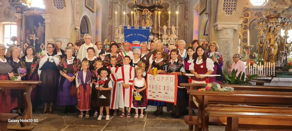 La funzione religiosa è stata animata dalla corale parrocchiale di Trontano diretta da Lorena Bagnasco. Dopo la messa si è svolta la processione in paese con la statua della Madonna portata a spalla dagli alpini e accompagnata dal Corpo Musicale di Crevoladossola, dalle Cavagnette portate dai gruppi folk di Trontano e dai rappresentanti di altri gruppi folk dell'Ossola: Cosasca, Vagna e Domodossola. Alla processione hanno preso parte esponenti delle associazioni che operano in paese e numerosi fedeli. Al termine vi è stato incanto delle offerte e l'aperitivo.