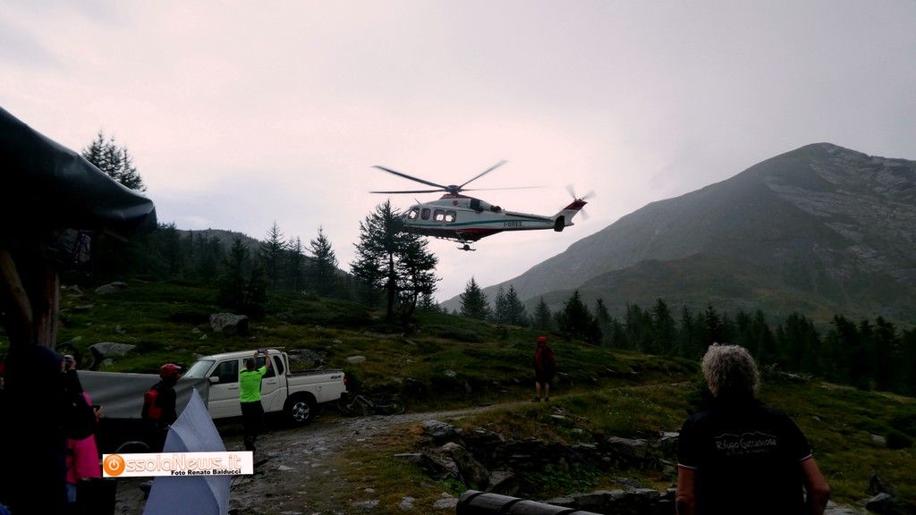 La donna si è sentita male e il soccorso alpino ha fatto intervenire l'elicottero che aveva a bordo altri membri del Cnsa. Il velivolo, nonostante la pioggia torrenziale e la grandine, ha raggiunto in poco tenpo la zona del Moscera, atterrando in un spiazzo molto limitato a due passi dal rifugio.