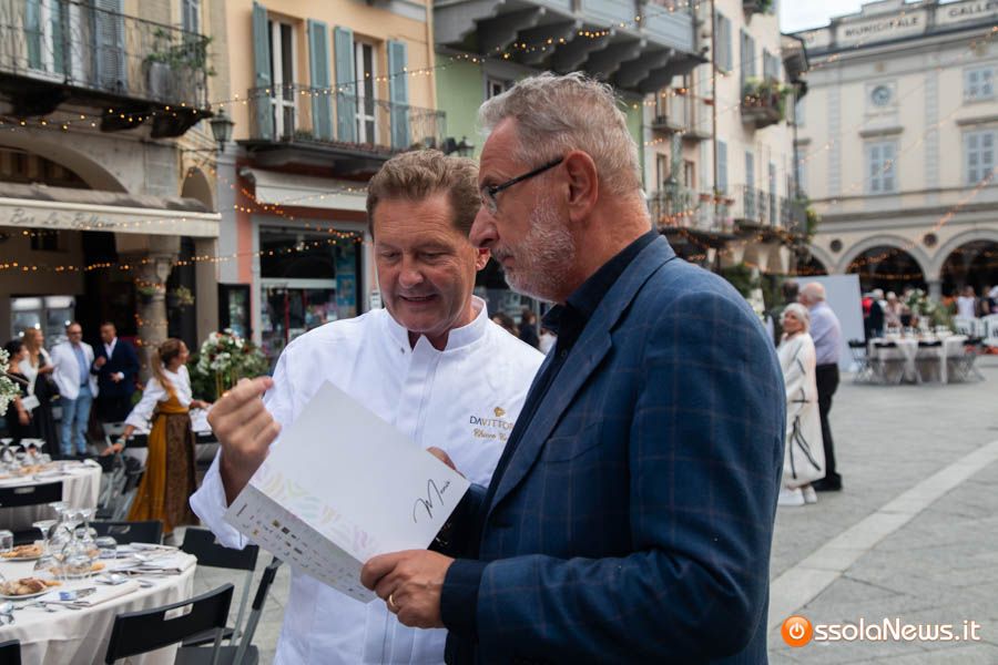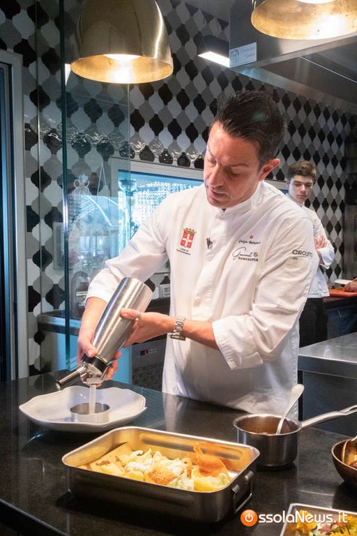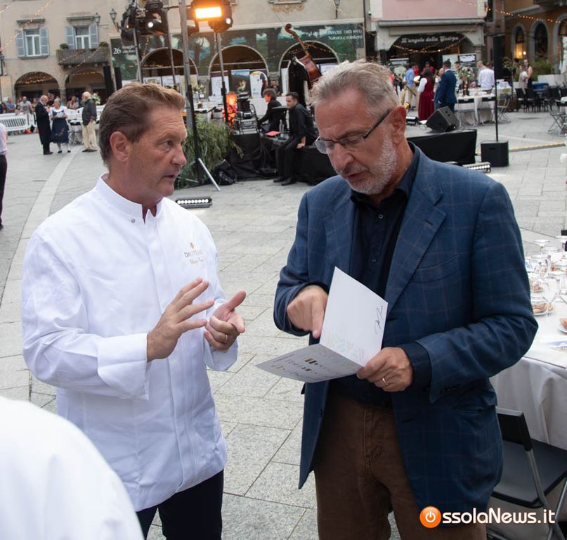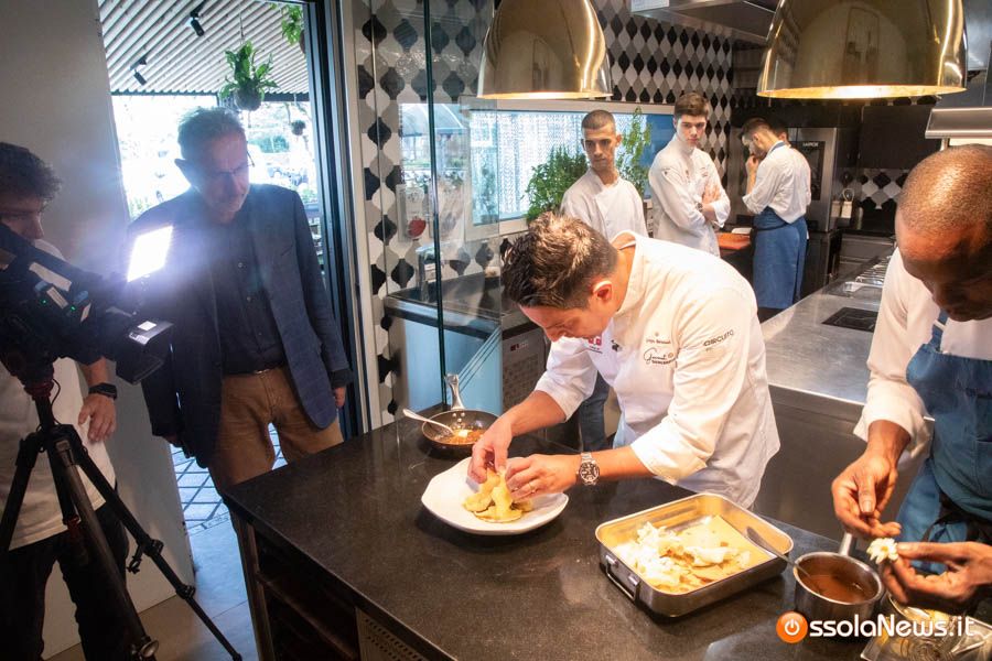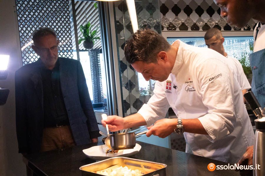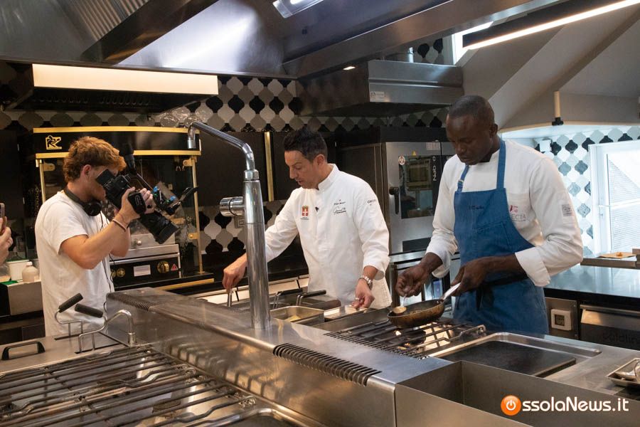 Il servizio di Studio Aperto Mag ha visto passare le immagini della preparazione di alcuni piatti della cena benefica, a partide dai paccheri di Vittorio, preparati dall'ospite d'onore, Chicco Cerea, il tristellato di Da Vittorio, ma anche i piatti realizzati da chef Giorgio Bartolucci de l'Atelier di Domodossola e da chef Norman Berini della Vie del Borgo di Toceno.