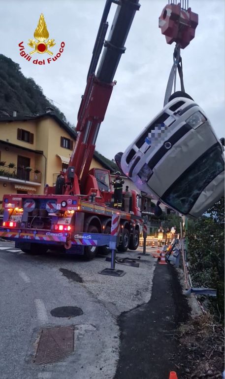 Sul posto il distaccamento dei vigili del fuoco di Domodossola con in supporto l'autogru per la messa in sicurezza e il recupero del veicolo. Illeso il conducente della vettura. Sul posto i carabinieri e il personale della provincia.