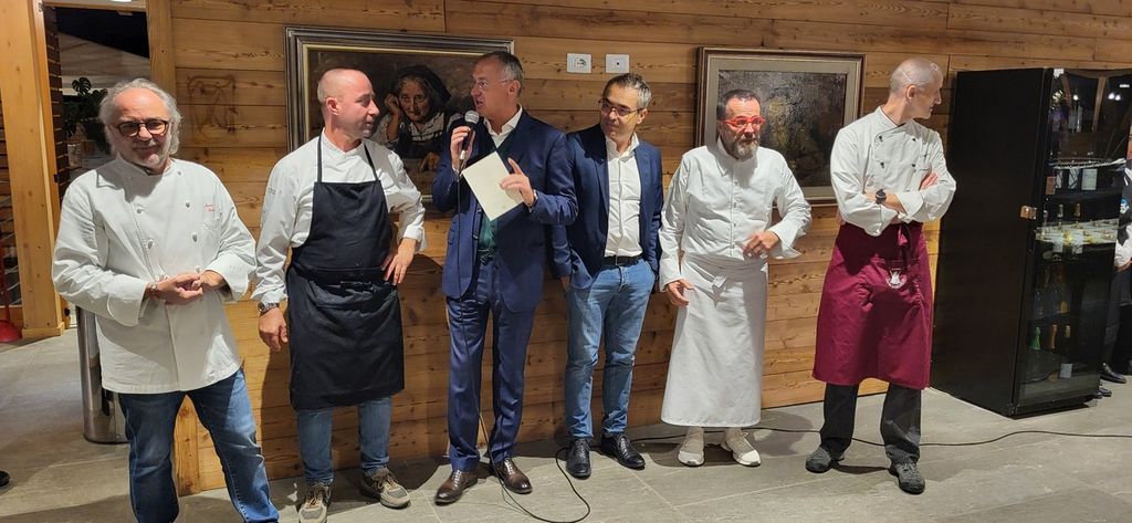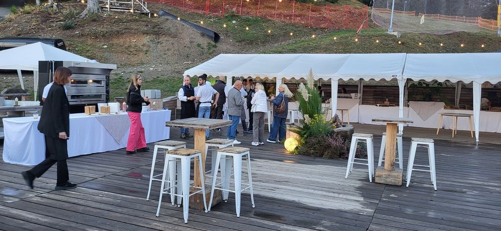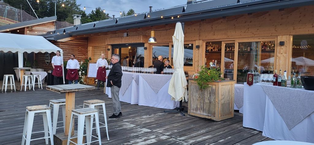 L'aperitivo in terrazza alle ultime luci del giorno coccolati dall'avvolgente suono del sax e degustando i prodotti e le eccellenze del territorio, la cena in Baita Motti con una carrellata di piatti proposti da chef stellati, chef del territorio e chef emergenti, calici e bollicine serviti dai somellier dell'Ais e un servizio al tavolo impeccabile con i ragazzi del Formont di Villadossola.