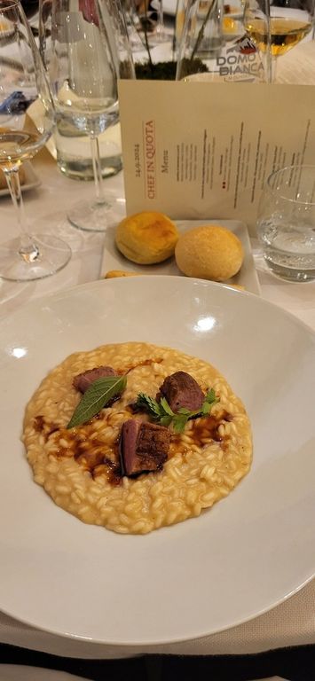 Raccontare "Chef in quota", la cena benefica organizzata con l'obiettivo di finanziare le tredicesime solidali, significa raccontare un viaggio che coniuga la bellezza unica di un luogo, Domobianca365 con la sua Baita Motti, e i sapori delle imprese d'eccellenza della Val d'Ossola con la maestria di ristoratori che con quella materia prima riescono a dare vita a piatti unici.