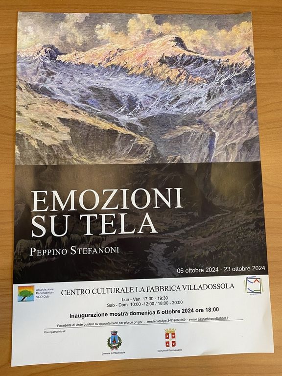 L’associazione Parkinsoniani Vco organizza una nuova iniziativa, con lo scopo di coniugare arte e solidarietà: il 6 ottobre sarà inaugurata al centro culturale La Fabbrica di Villadossola la mostra “Emozioni su tela”, dedicata a Peppino Stefanoni.