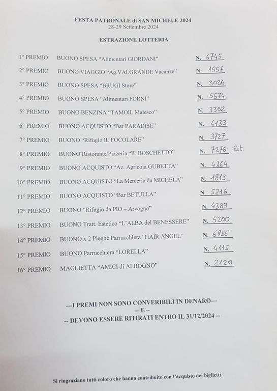 Una tre giorni ben orchestrata dai tanti volontari del Comitato "Amici di Albogno". Piatti della tradizione e specialità culinarie, giochi per i bambini e tanto divertimento. In tanti anche sabato sera per la tradizionale e partecipata processione con la statua del Santo Patrono San Michele per le vie della frazione.