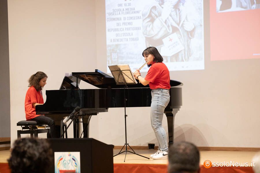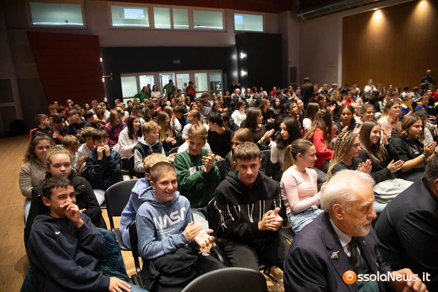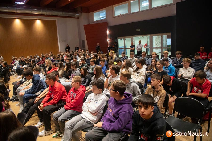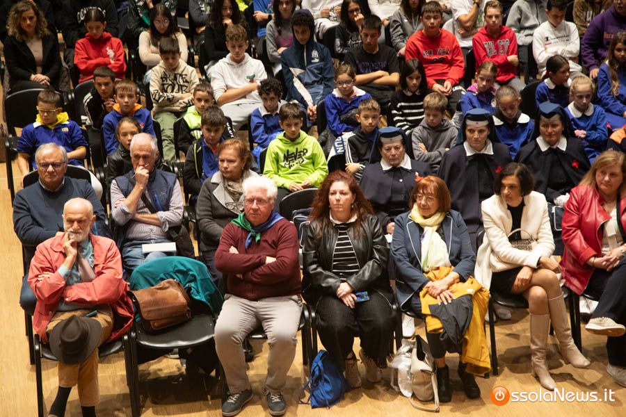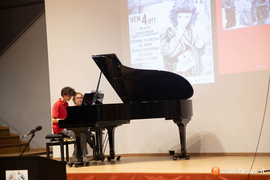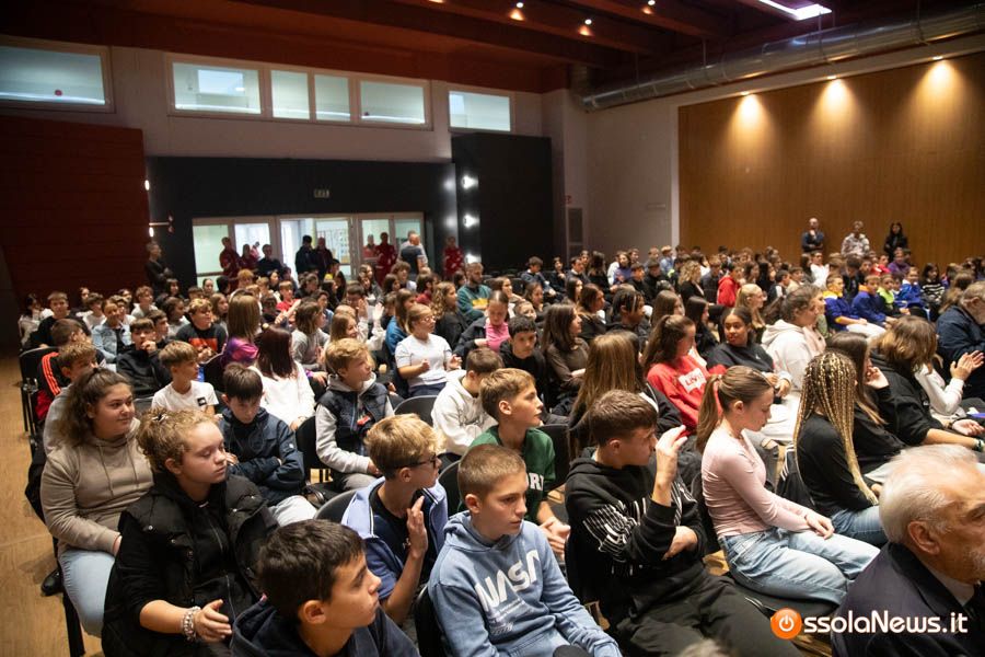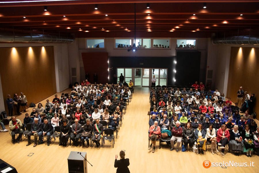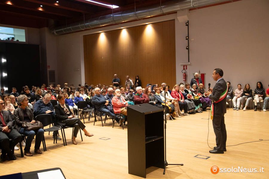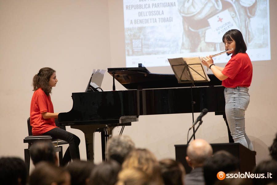 Un’aula magna della scuola media, dicevamo, piena di studenti ed insegnanti per l’importante ricorrenza degli 80 anni dalla Repubblica partigiana. Una cerimonia che ha visto gli studenti recitare alcuni bravi legato alla resistenza e alla condizione della donna nell’era fascista. Letture intervallate da brani musicali proposti da ragazzi e ragazze della scuola domese.