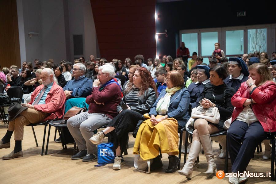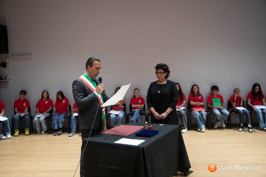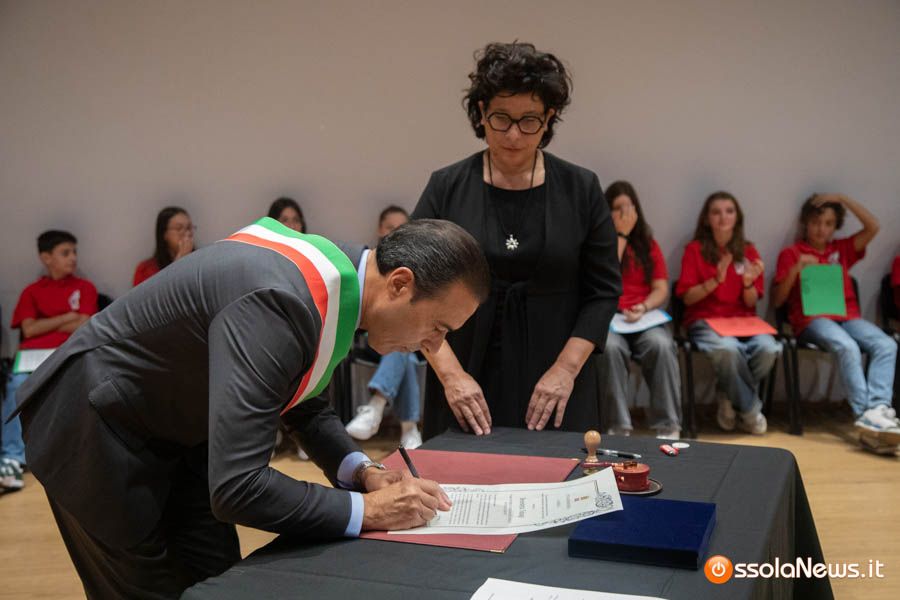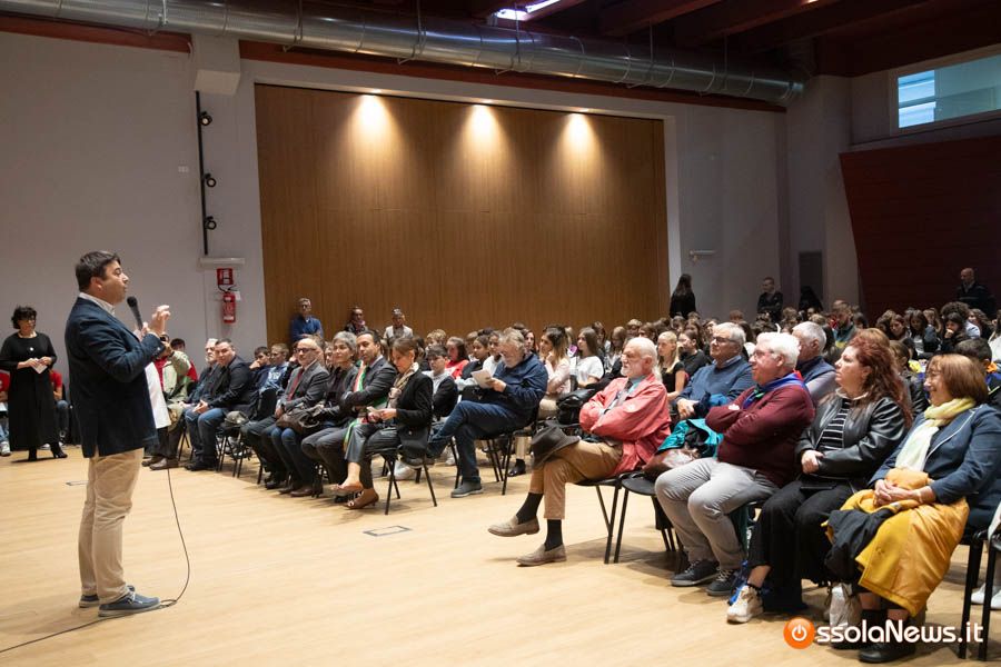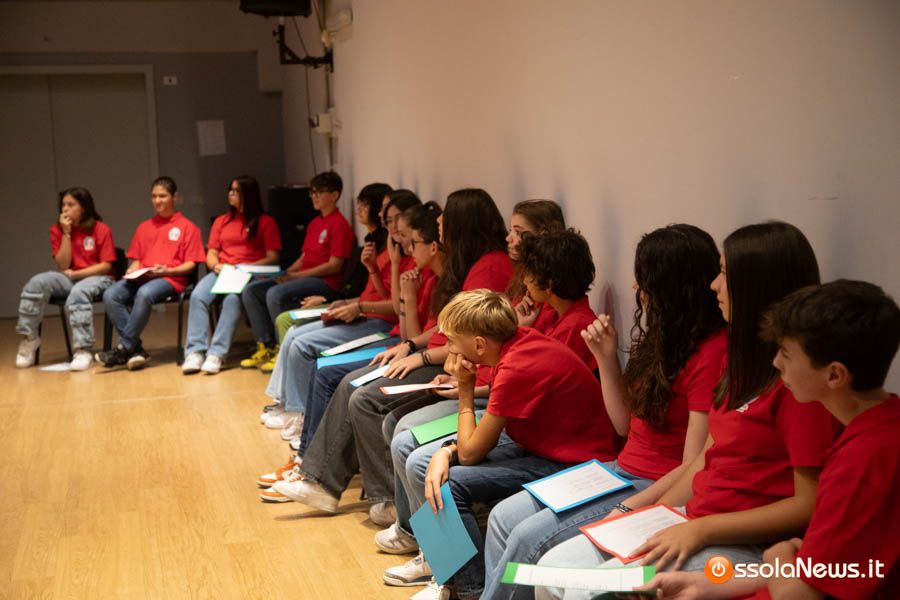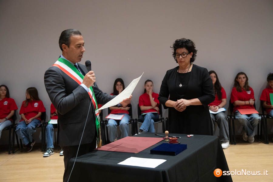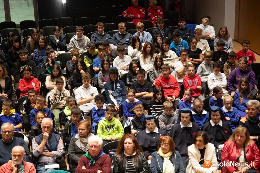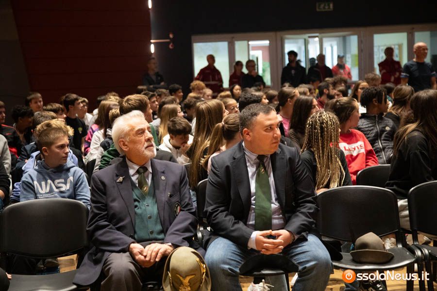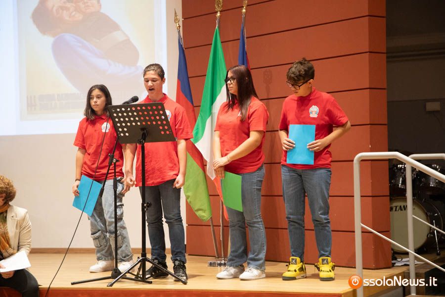 Un’aula magna della scuola media, dicevamo, piena di studenti ed insegnanti per l’importante ricorrenza degli 80 anni dalla Repubblica partigiana. Una cerimonia che ha visto gli studenti recitare alcuni bravi legato alla resistenza e alla condizione della donna nell’era fascista. Letture intervallate da brani musicali proposti da ragazzi e ragazze della scuola domese.