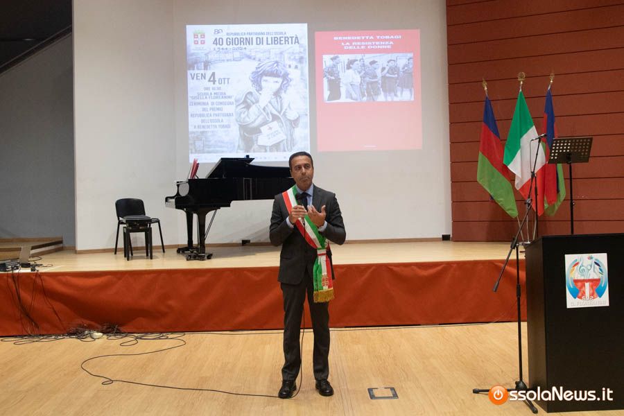 ‘’Senza le donne non i sarebbe stata la Resistenza’’. Lo dice ricordando il ruolo delle donne nella lotta al nazifascismo e ricordando Gisella Floreanini, ‘’che divenne ministro in quell’esperienza di Governo della Repubblica del’Ossola , nato non solo per combattere la dittatura ma per dar vita ad un mondo diverso. Nella pagina di storia che stiamo celebrando c’è un significato: ogni persona ha un valore. E chiunque può fare cose importanti nel luogo dove si trova’’.
