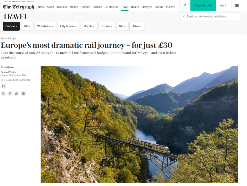 Anche il "Telegraph" viaggia a bordo della ferrovia Vigezzina-Centovalli