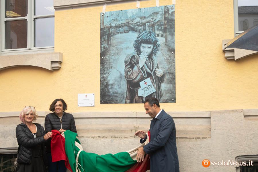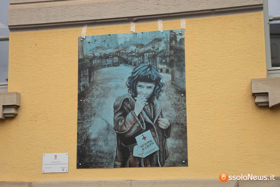 L’opera, realizzata dall’artista Patrizia Pollato, si ispira al film “Quaranta giorni di libertà” e rappresenta in primo piano una bambina – una tra le migliaia di bambini che, durante la guerra, furono portati oltreconfine, in Svizzera, per trovare rifugio – con alle spalle uno scorcio della piazza Mercato di Domodossola. Un’opera che, ormai, i domesi conoscono bene: è infatti diventata l’immagine delle celebrazioni per l’80° anniversario.