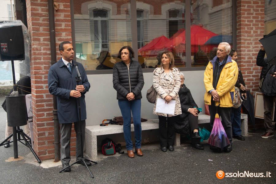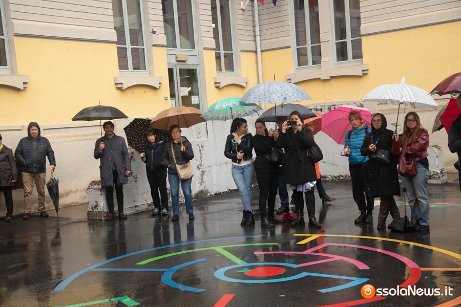 Alla cerimonia di inaugurazione del murale erano presenti il sindaco di Domodossola Lucio Pizzi, la dirigente scolastica della direzione didattica 1° circolo Patrizia Taglianetti e l’artista Patrizia Pollato, oltre ad altri rappresentanti dell’amministrazione comunale e di associazioni, prima tra tutte l’Anpi. Ad accompagnare l’evento, l’esibizione del coro dei bambini delle classi quinte della scuola Milani.