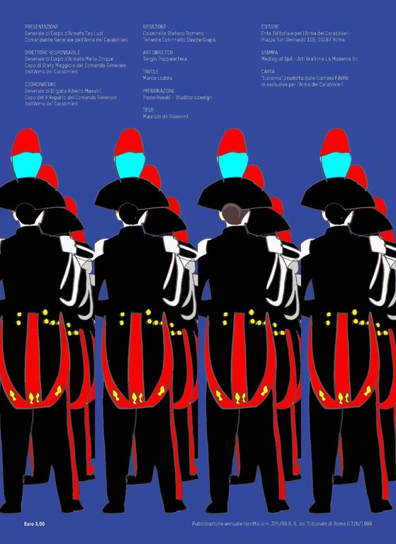 “I carabinieri e i giovani” è il tema del nuovo calendario storico, realizzato con il contributo di celebri personaggi dello scenario artistico-letterario italiano, Marco Lodola e Maurizio de Giovanni; il primo che ha curato la veste grafica dell’opera è considerato un artista poliedrico del nuovo futurismo e della pop art italiana, mentre il secondo, scrittore partenopeo di successo, è noto per le collane de “Il Commissario Ricciardi”, “I Bastardi di Pizzofalcone”, “Mina Settembre”.