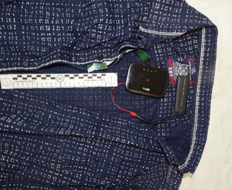 Nelle diverse perquisizioni personali e locali eseguite sono stati sequestrati 14 telefoni cellulari, 9 modem video/audio, 6 auricolari, 6 micro telecamere, 15 capi di abbigliamento già attrezzati con i dispositivi tra cui microtelecamere già installate ed occultate nei bottoni, decine di batterie per l’alimentazione dei dispositivi, 12.000 € in contanti nonché una pinzetta per l’estrazione dei micro auricolari.