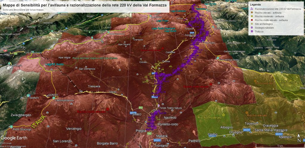 L’esame delle mappe di sensibilità conferma, dunque, che il progetto di razionalizzazione della rete in altissima tensione, sul territorio della Val D’Ossola, ricade interamente in zona rossa, ovvero in un’area vietata, a tutela dell’ambiente, dell’ecosistema, del paesaggio e dei beni e siti a valenza storico-documentaria ed etnografica, e metterebbe a rischio numerose specie di avifauna protetta.