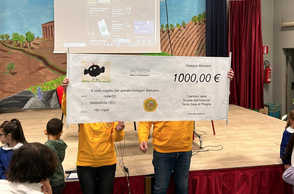 Il progetto non si è fermato alla sfera educativa. Grazie al coinvolgimento di genitori, insegnanti e membri del Kiwanis, è stata raccolta e donata una somma di 1.000 euro all’Associazione Matibellula Odv e alla famiglia Cara che ha espresso gratitudine per il gesto, sottolineando l’importanza di un’iniziativa nata dai bambini: “Questo contributo è un grande regalo. È meraviglioso vedere come un piccolo gesto d’amore verso un uccellino possa generare così tanta solidarietà.”