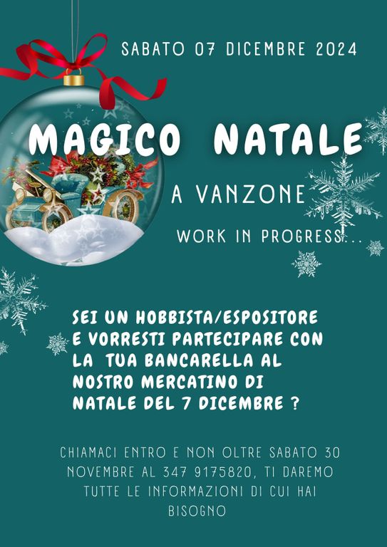 Anche quest’anno la Pro Loco di Vanzone e l’associazione “I Ghet ad Canfnil” organizzano Sabato 7 dicembre, dalle ore 9 alle ore 18.30, l’evento “Magico Natale a Vanzone”.