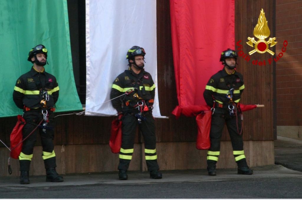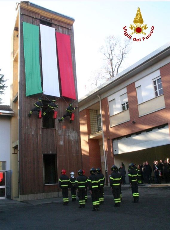 Un saggio delle professionalità dei vigili del fuoco nel gestire l'incendio di una bombola di gas e la calata della bandiera italiana dal castello di manovra con tecniche di derivazione speleo-alpine alla presenza delle autorità hanno concluso la mattinata.