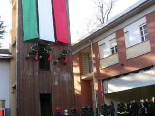 Un saggio delle professionalità dei vigili del fuoco nel gestire l'incendio di una bombola di gas e la calata della bandiera italiana dal castello di manovra con tecniche di derivazione speleo-alpine alla presenza delle autorità hanno concluso la mattinata.