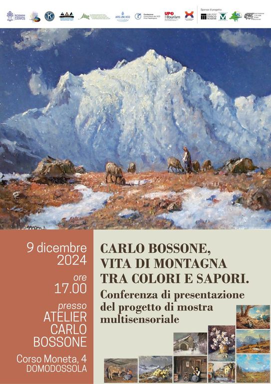 Lunedì 9 dicembre 2024, alle ore 17:00, Domodossola ospiterà la conferenza di presentazione della mostra multisensoriale "Carlo Bossone, vita di montagna tra colori e sapori", un evento che promette di immergere i visitatori nell'affascinante mondo delle Alpi attraverso gli occhi dell'artista Carlo Bossone. La conferenza si terrà presso l'Atelier Carlo Bossone in Corso Moneta 4, dando il via a un’esperienza che celebra la montagna non solo visivamente, ma anche attraverso l'olfatto, il gusto e il tatto.