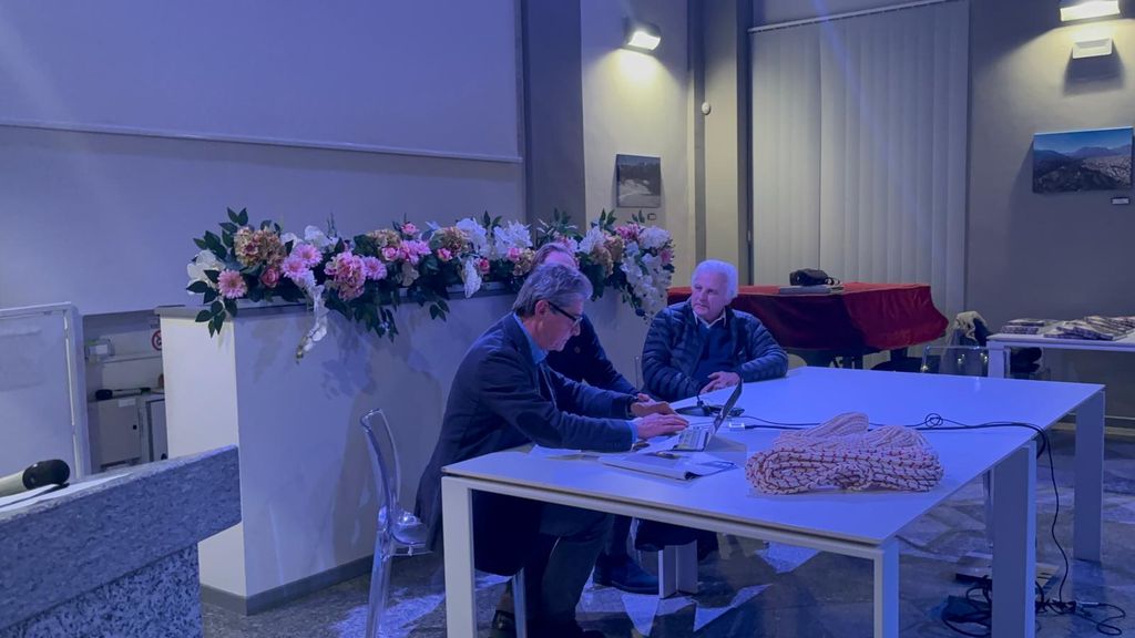 Dopo i saluti istituzionali con l’intervento dell’assessore Gianluca Iervasi e del presidente generale del Cai, Antonio Montani, il convegno – moderato dalla redattrice de “Il Rosa”, Maria Cristina Tomola – è entrato nel vivo con un interessante contributo dello scrittore e studioso Paolo Crosa Lenz, sull’affermazione mondiale dell’alpinismo italiano legata proprio a questa storica impresa del 1954. Il direttore de Il Rosa (e collaboratore di Ossolanews) Andrea Delvescovo ha intervistato Giuseppina Tettamanti (Azienda Tettamanti di Trecate, che aveva fornito nel 1954 le innovative termotute agli scalatori) mentre Frangioni ha interloquito con Luigi e Pierangelo Maffioli (Gottifredi Maffioli, che aveva prodotto le prime corde con il nylon della Rhodiatoce di Pallanza). Infine, l’avvocato Massimo Palazzi ha affrontato il ruolo dei materiali e della logistica di questa storica spedizione, partendo dai manoscritti inediti di Ugo Angelino.