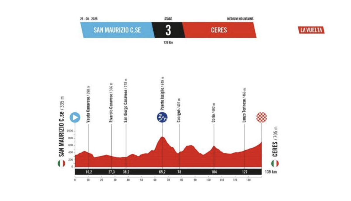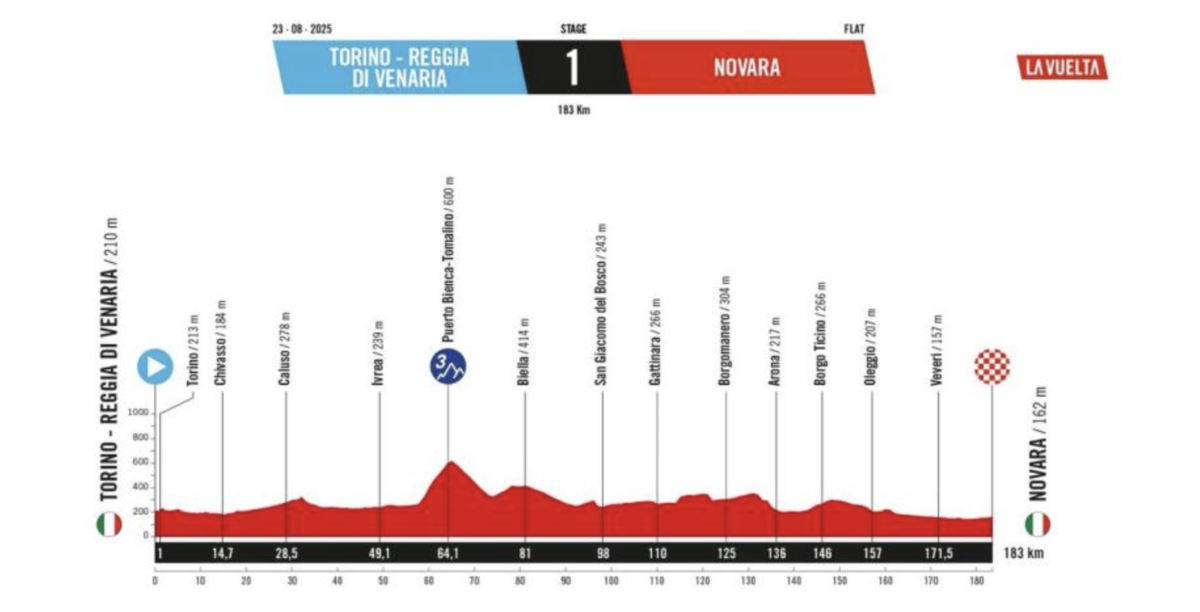 Tra il 23 e il 26 agosto La Vuelta passerà per 137 Comuni, di cui 73 in provincia di Torino, 12 in quella di Biella, 3 in quella di Vercelli, 19 in quella di Novara e 30 in quella di Cuneo.