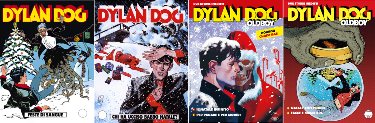 Un altro personaggio bonelliano che ha vissuto natali movimentati è Dylan Dog. Forse detiene addirittura una sorta di primato, data la quantità di avventure che lo vedono impegnato in questa tematica. Citiamo alcuni degli albi in questione: il primo è “Feste di sangue” numero 87 del dicembre 1993 di Chiaverotti/Rinaldi; il secondo è il numero 196 del dicembre 2002, intitolato “Chi ha ucciso Babbo Natale”, di Ruju/Casertano. Infine ricordiamo due albi della collana “Old Boy”: il numero 4 “Horror Christmas” del dicembre 2020, che contiene una storia di Ostini, “Il Natale Infinito”, e il numero 16 del dicembre 2022 con la storia “Natale con l’orco” di Gabriella Contu.