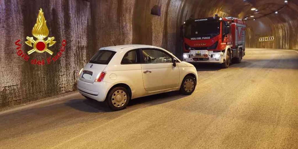In una galleria in località Pestarena un'auto condotta da una giovane ha perso aderenza sbandando ed andando a sbattere sulla parete interna della galleria stessa.
