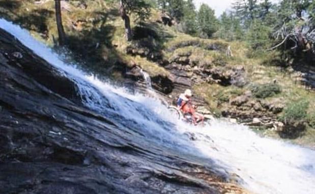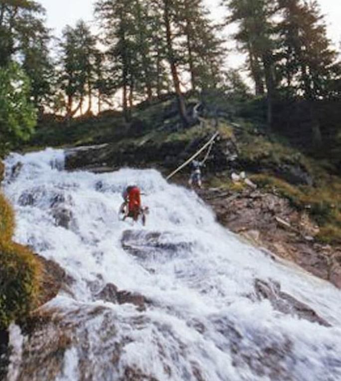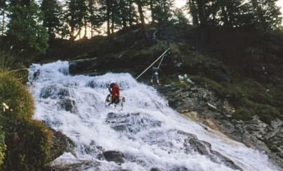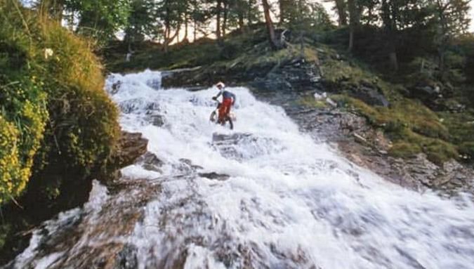 Il set fotografico era ogni angolo di quella cascata, tra le impetuose acque e le rocce scivolose. Un servizio fotografico non facile anche per i fotografi che lo realizzarono e un’impresa per il giovane ossolano, grande appassionato di trial.