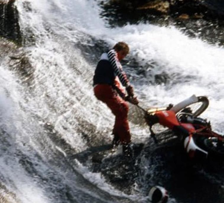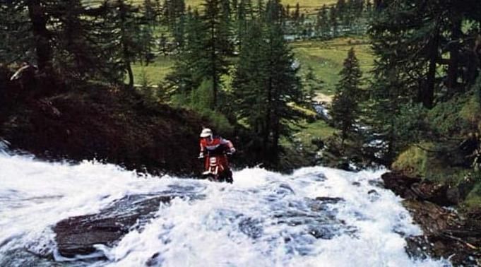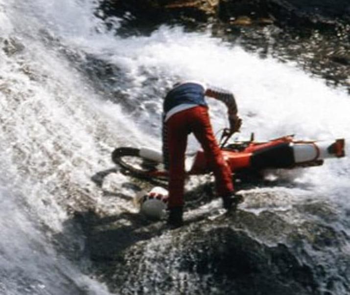 Racconta Daverio: ‘’Un servizio fotografico coordinato dall’esperto Gigi Colomo, utilizzando due Fantic Motor, un 125 e un 200. Consisteva nel risalire la cascata in sella a una moto da trial: non fu cosa semplice da un punto di vista tecnico, ma ci provai’’. Tra innumerevoli difficoltà causate dalla forte corrente e dal fondo viscido, tra cadute ed equilibrismi.