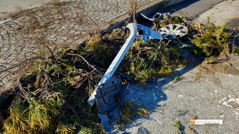 La penna nera è stata abbattuta e della composizione resta ben poco mente a terra sono visibili parti dell’auto che l’ha danneggiata.