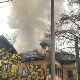 Tetto in fiamme nel centro di Masera