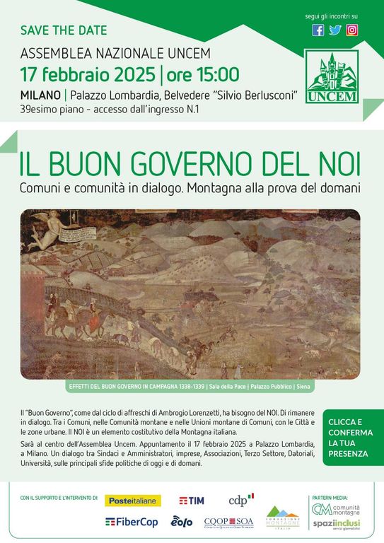 Se ne parlerà il 17 febbraio a Milano a Palazzo Lombardi nell'Assemblea nazionlale Uncem dal titolo: "Il buon Governo del NOI. Comuni e comunità in dialogo. Montagna alla prova del domani". Interverranno Amministratori locali, Sindaci, Consiglieri regionali, esperti, pianificatori, imprenditori, terzo settore, in un dialogo fitto che parte da un chiaro punto: il Paese ha bisogno di paesi, Comuni grandi e piccoli, che lavorino insieme.