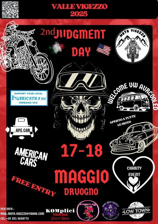 In Valle Vigezzo si scaldano i motori per il “2nd Judgment Day”, il motoraduno organizzato dall'associazione Moto Vigezzo in collaborazione con “Biscotto's Garage” di Bellinzona. Moto Vigezzo è un gruppo nato sui social che in poco tempo è cresciuto radunando un sempre maggior numero di iscritti. Quest'anno la manifestazione rivolta agli amanti delle due ruote ma non solo - in programma sabato 17 e domenica 18 maggio - si svolgerà a Druogno, presso l'area attrezzata del Gruppo Alpini.