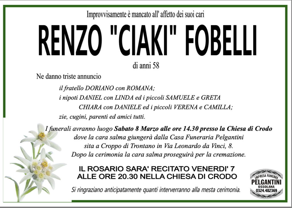 Renzo "Ciaki" Fobelli di anni 58