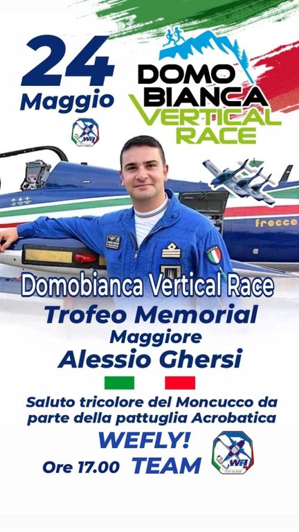 Sui cieli di Domobianca sabato 24 maggio, in occasione della Vertical Race, volerà la pattuglia acrobatica We Fly Team. l'unica pattuglia aerea al mondo in cui due dei tre piloti sono disabili. Un vero e proprio fiore all'occhiello dell'Aviazione civile italiana che si esibirà mezz'ora prima dell'avvio della gara. Si tratterà di uno spettacolo organizzato in memoria del Maggiore delle Frecce Tricolori, Alessio Ghersi, orgoglio della città di Domodossola.