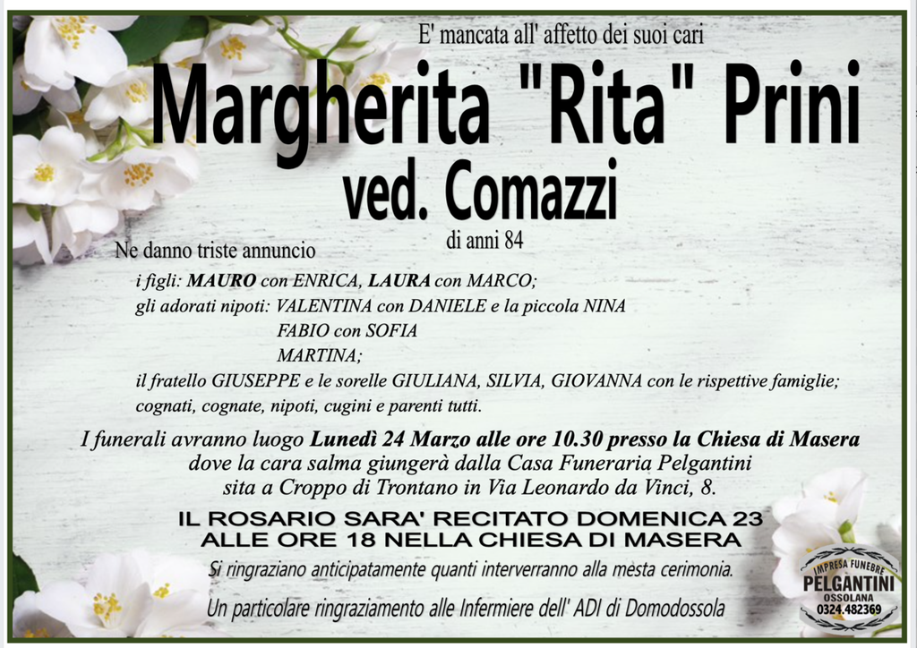 Margherita "Rita" Prini ved. Comazzi di anni 84