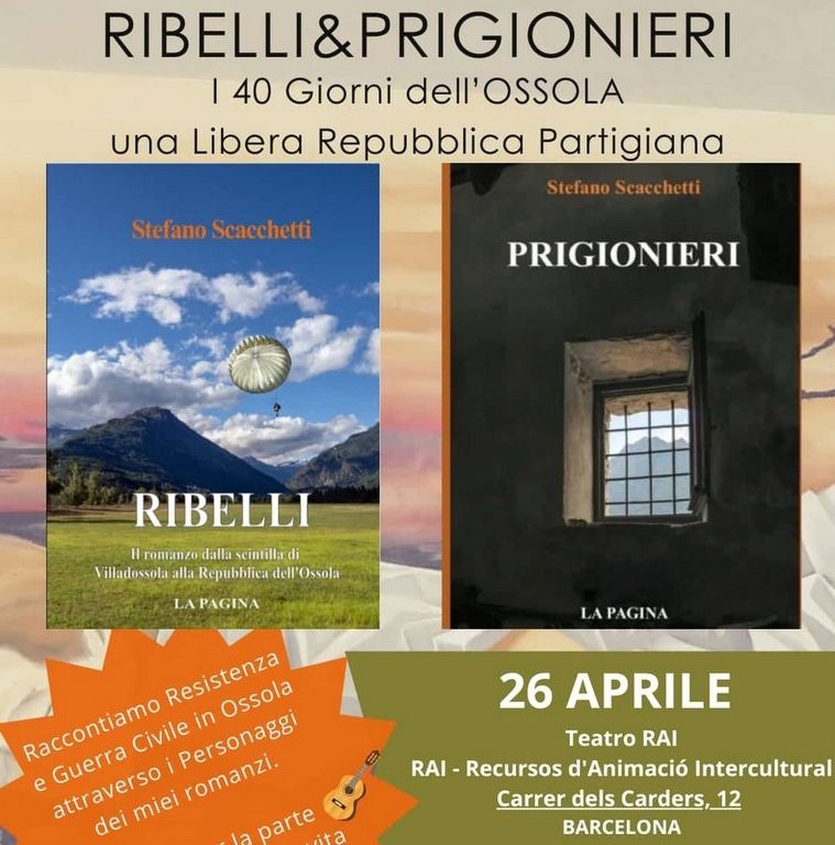A ricordare quell’esperienza di governo in un’Italia del Nord ancora occupata dai nazifascisti sarà Stefano Scacchetti, che in terra catalana presenterà i suoi due libri: Ribelli e Prigionieri. Che il gioane villadossolese, che lavora in Spagna, ha pubblicato grazie alla libreria La Pagina di Villadossola.