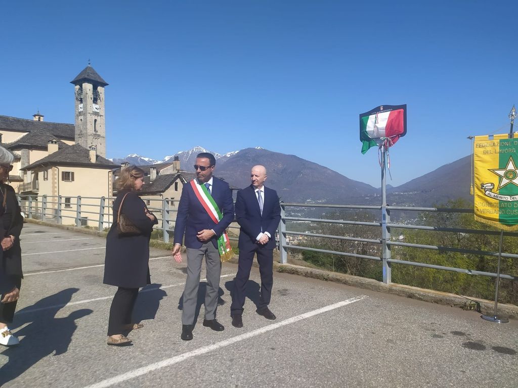 Dopo la messa, nella chiesa di San Brizio, c'è stato lo scoprimento della targa con la benedizione del parroco don Vincenzo Barone. Sono poi intervenuti il sindaco di Domodossola Lucio Pizzi, il console regionale del Piemonte dei Maestri del Lavoro Ubaldo Uberti nonché console delle province di Novara e Vco, il vice console vicario con delega per il Vco Giuseppe Gesù.