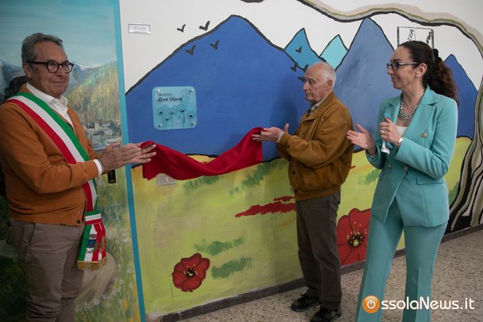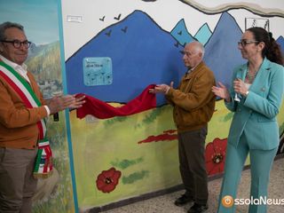 Non solo l’aula, ma anche lo spazio antistante abbellitto da murales sono stati dedicati alla partigiana ossolana, alla presenza del figlio Angelo che ha portato un ricordo della madre.
