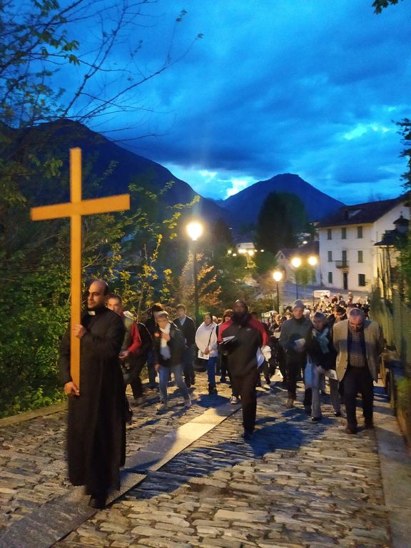 Molti fedeli hanno partecipato ieri sera alla via Crucis del Venerdì Santo al Sacro Monte Calvario. A guidare il percorso devozionale è stato il padre generale dei rosminiani don Marco Tanghetti. Con i padri rosminiani era presente anche un gruppo di studenti, chierici, novizi e postulanti delle due case internazionali dei rosminiani di Roma che si trovano al Sacro Monte per il periodo pasquale.